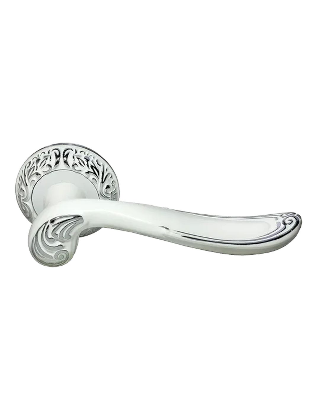 Ручка дверная Morelli GIUSEPPE MH-22-CLP W/PC раздельная на круглом основании, цвет белая эмаль/хром, ЦАМ