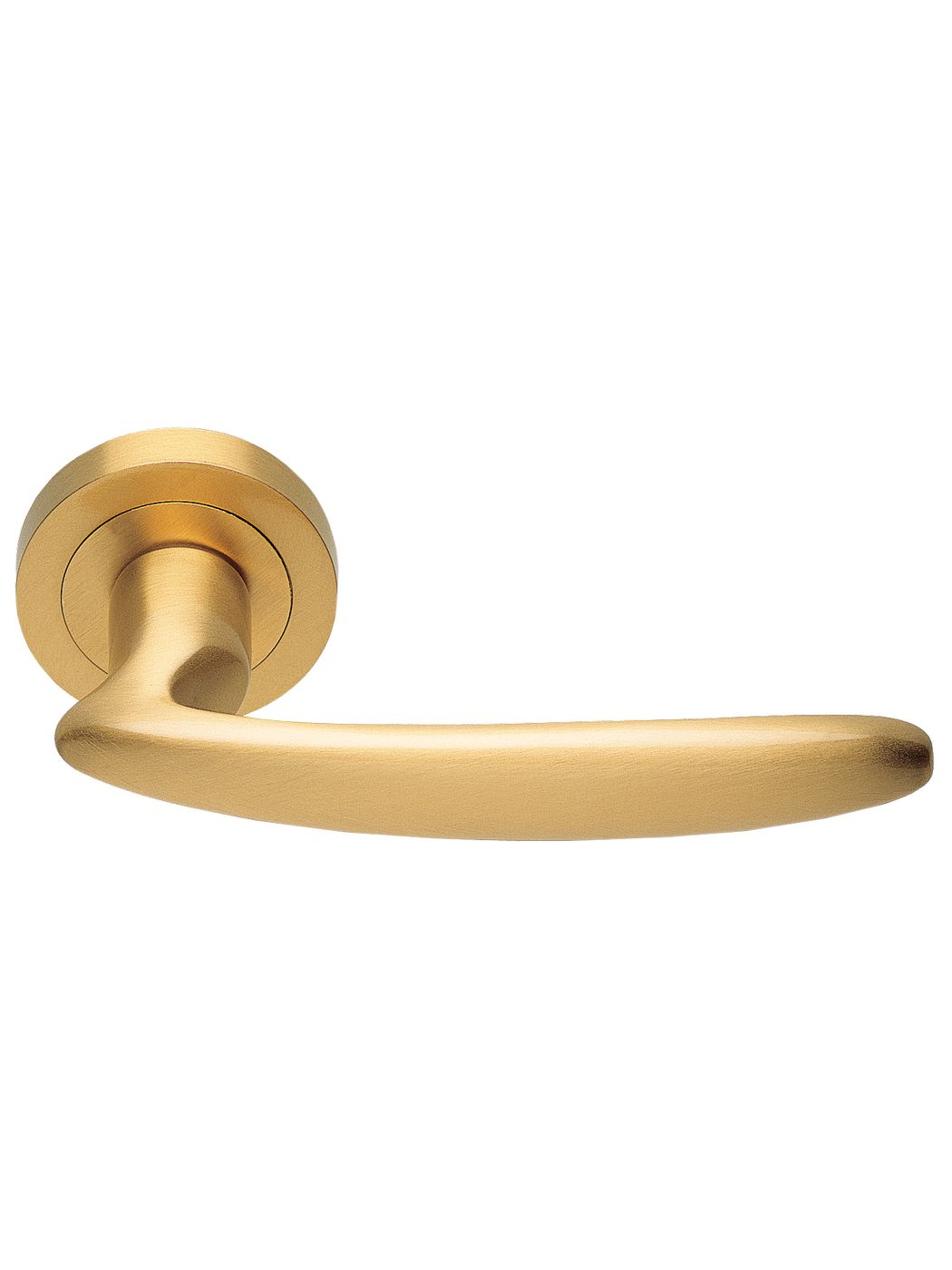 Ручка дверная FLAMINGO R2 OSA раздельная на круглой розетке, цвет - матовое золото, латунь купить в Москве на официальном сайте Морелли. Полный каталог фурнитуры Morelliс ценами, фото и отзывами. Доставка по России.">