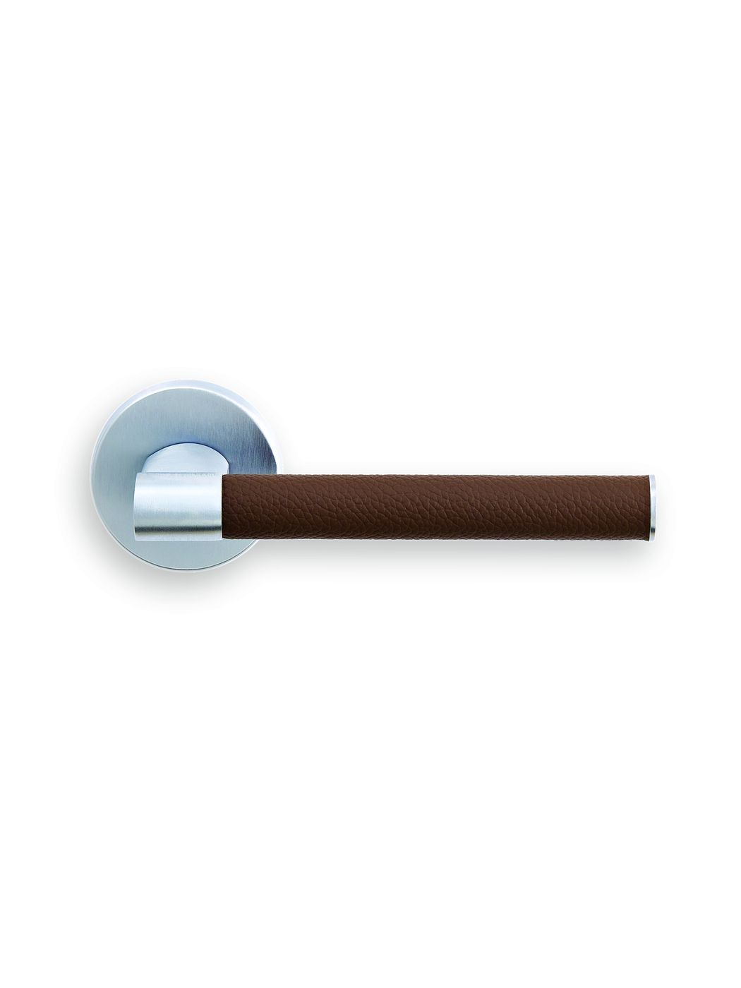 Ручка дверная HIDE LEATHER R6 CSA/TESTA DI MORO раздельная на круглой розетке, цвет - матовый хром/темно-коричневый, латунь купить в Москве на официальном сайте Морелли. Полный каталог фурнитуры Morelliс ценами, фото и отзывами. Доставка по России.">