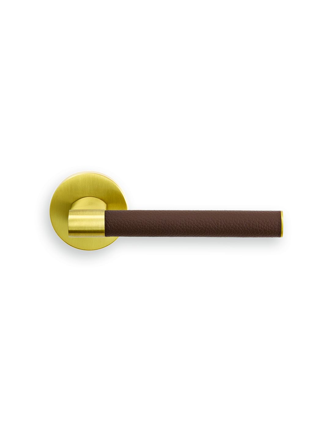 Ручка дверная HIDE LEATHER R6 OSA/TESTA DI MORO раздельная на круглой розетке, цвет - матовое золото/темно-коричневый, латунь купить в Москве на официальном сайте Морелли. Полный каталог фурнитуры Morelliс ценами, фото и отзывами. Доставка по России.">