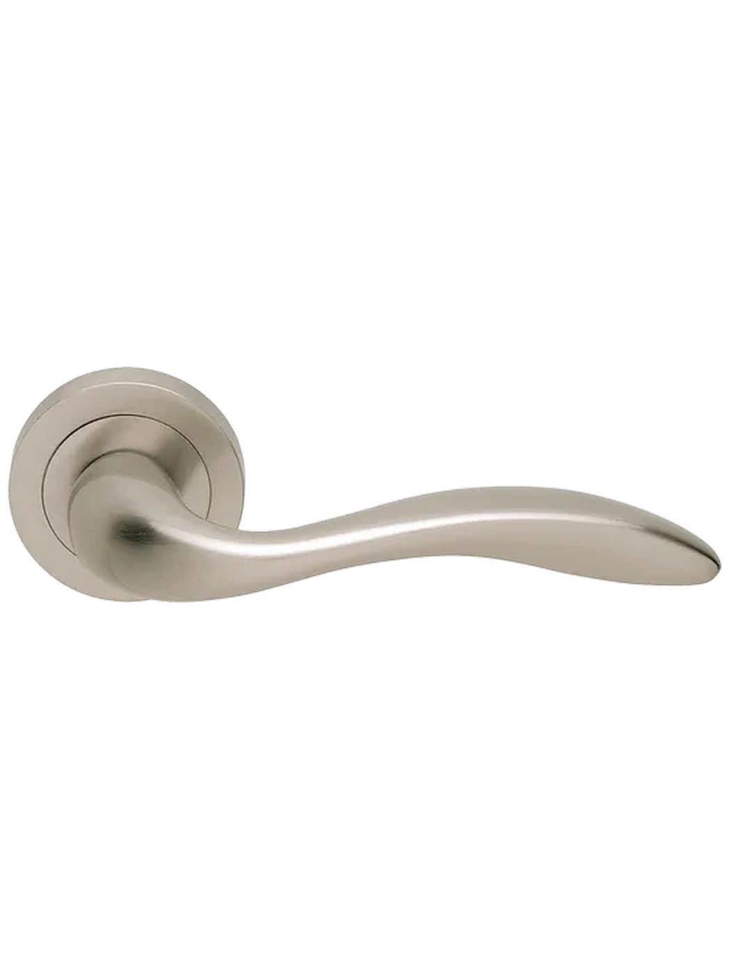 Ручка дверная Morelli Luxury LEON R2 NIS раздельная на круглой розетке, цвет матовый никель, латунь