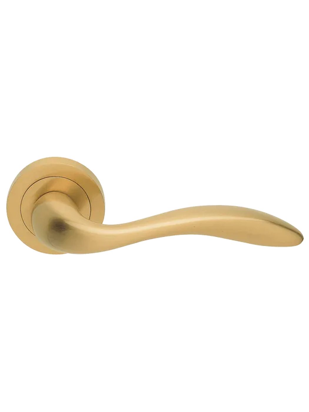 Ручка дверная Morelli Luxury LEON R2 OSA раздельная на круглой розетке, цвет матовое золото, латунь