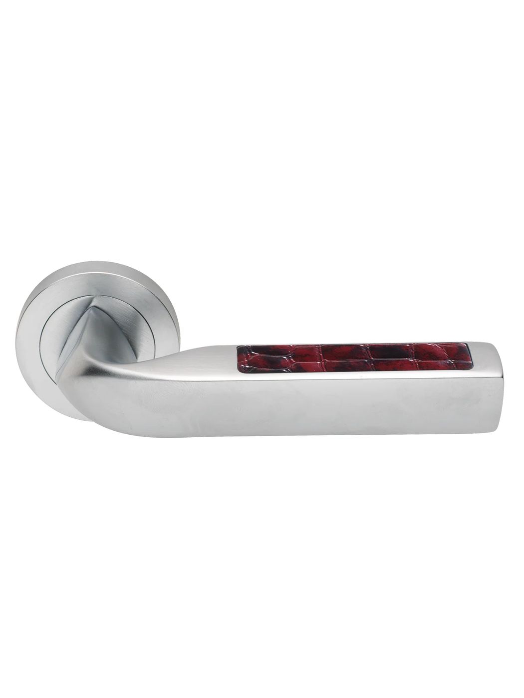 Ручка дверная Morelli Luxury MATRIX-2 R2 CSA/CROCODILE на круглом основании, цвет матовый хром/принт крокодила, латунь