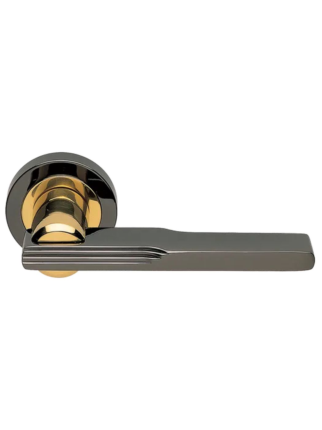 Ручка дверная Morelli Luxury VERONICA R2 NNO раздельная на круглой розетке, цвет - черный хром/золото, латунь
