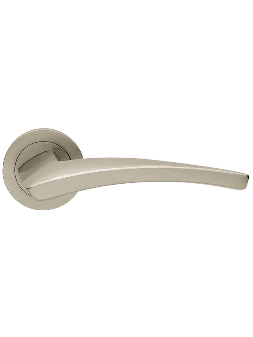 Ручка дверная Morelli Luxury WIND R1 NIS раздельная на круглой розетке, цвет матовый никель, латунь