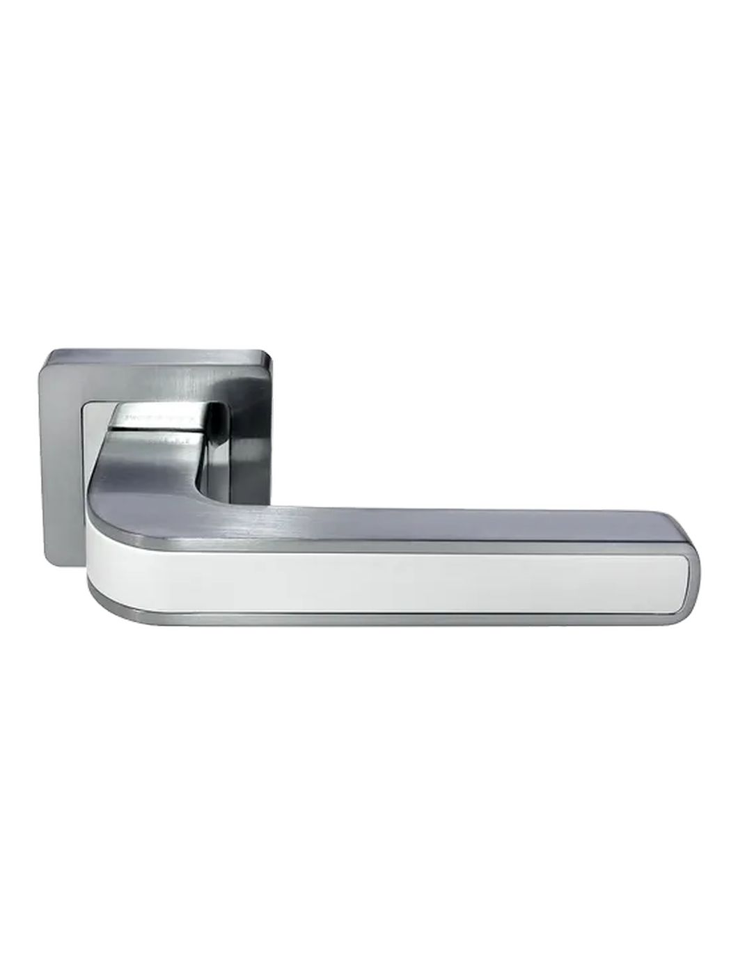 Ручка дверная Morelli MH-46 SC/W-S55 раздельная на квадратной розетке, цвет матовый хром/белый, ЦАМ Light