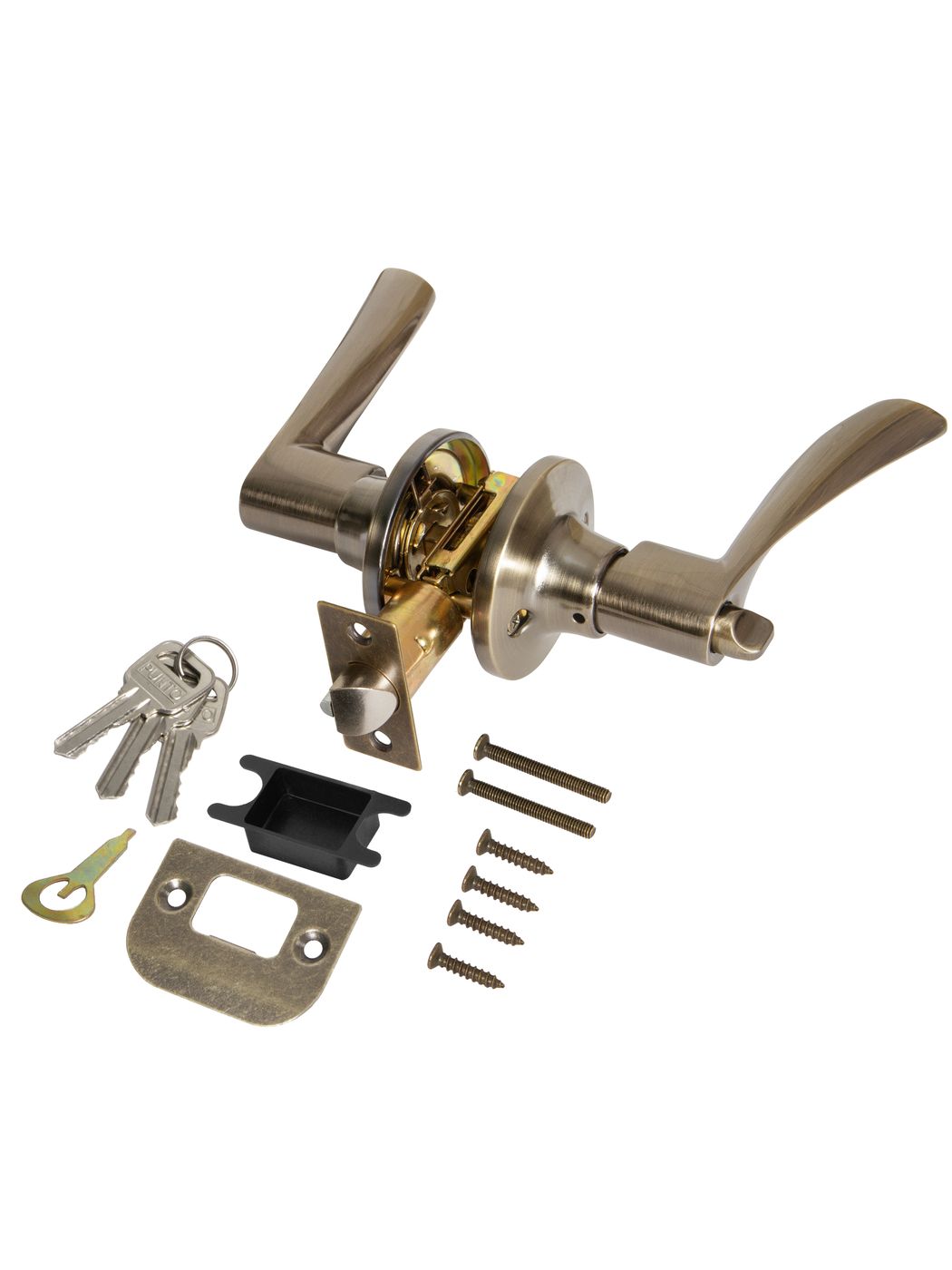 Комплект дверных ручек с защелкой (KNOB) Punto предназначен для установки в межкомнатные двери толщиной 35-45 мм. Подходит для дверей правого и левого открывания. Гальваническое покрытие прошло тест на устойчивость к коррозии в соляном тумане и соответствует 1 классу ГОСТ. Бэксет защелки регулируется - 60/70 мм. Материал изготовления: сталь. Комплектация: защелка, ответная планка с декоративной заглушкой, дверные ручки, крепежная фурнитура, шаблон и инструкция по установке.
