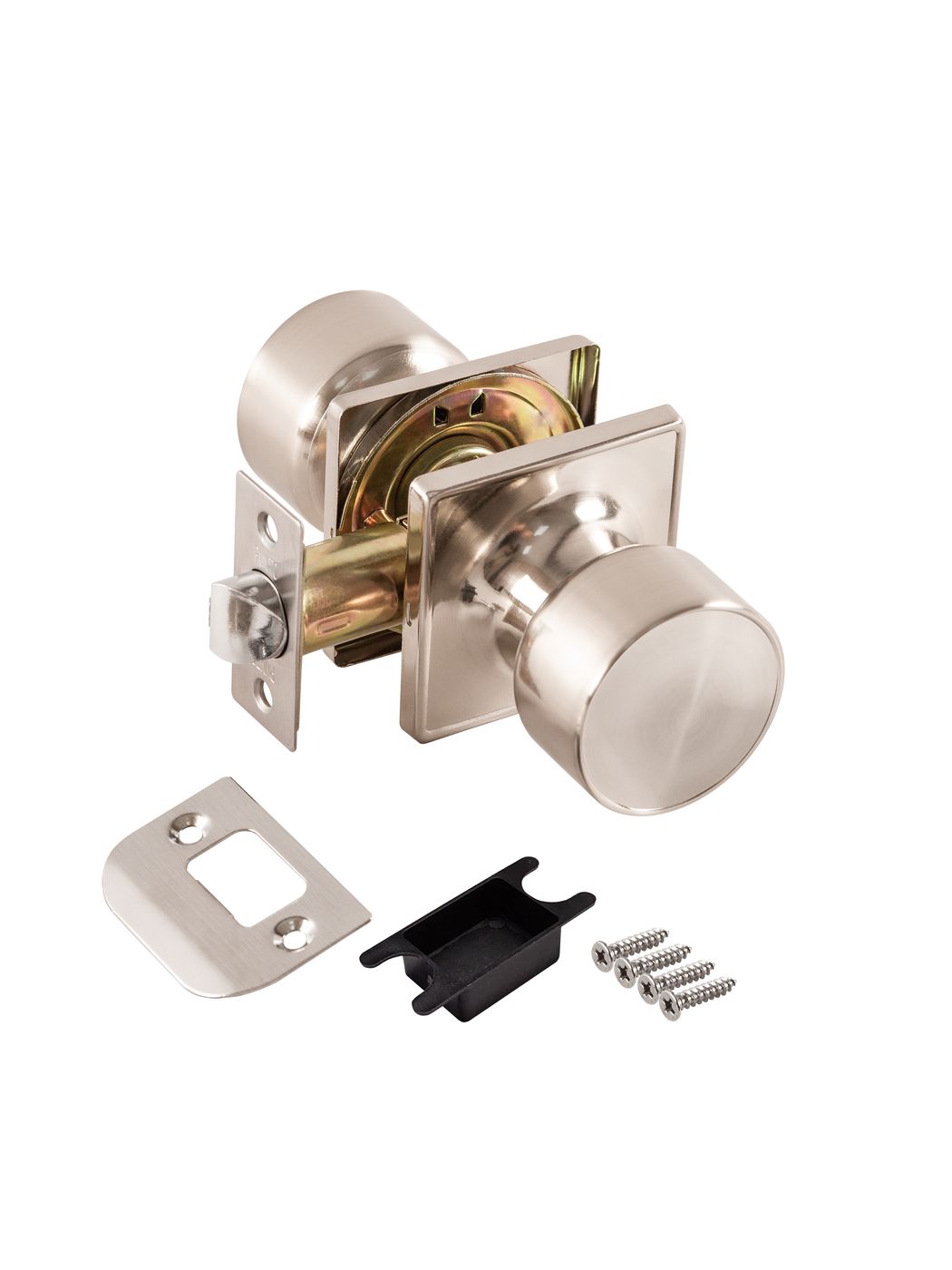 Комплект дверных ручек с защелкой (KNOB) Punto серии 772/BL SN-PS предназначен для установки в межкомнатные двери толщиной 35-45 мм. Толщина основания - 7 мм. Подходит для дверей правого и левого открывания. Гальваническое покрытие прошло тест на устойчивость к коррозии в соляном тумане и соответствует 1 классу ГОСТ. Ресурс работы ручек-защелок более 150 000 циклов открывания/закрывания, что гарантирует безотказную работу двери более чем на 15 лет. Бэксет защелки регулируется - 60/70 мм. Материал изготовления: сталь. Модификация: без фиксатора. Цвет: никель. Комплектация: защелка, ответная планка с декоративной заглушкой, дверные ручки, крепежная фурнитура и инструкция по установке.