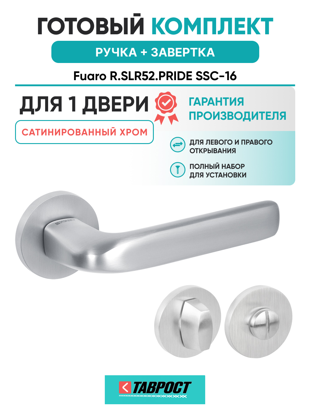 Ручка дверная Fuaro (Фуаро) межкомнатная R.SLR52.PRIDE SSC-16 сатинированный хром Набор 1