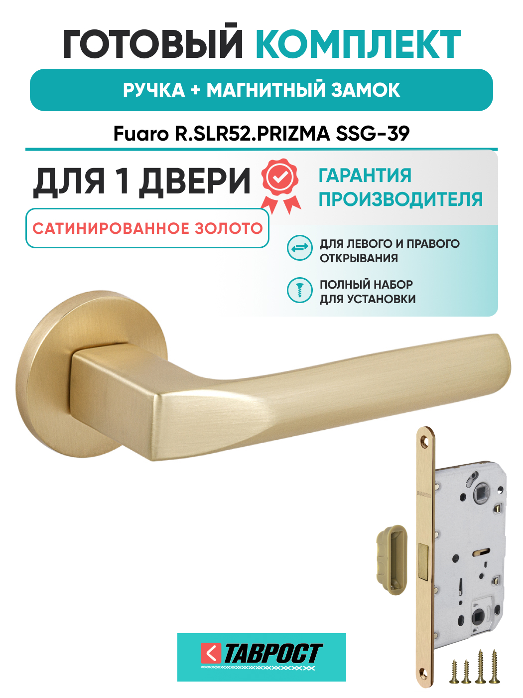 =this.property.NAME_2 (страна производства Китай , тип конструкции: ), выпускается в заводских условиях, с соблюдением всех технологических требований производства и контролем на всех этапах производства. Ручка изготовлена из материала , который широко используется при производстве дверной фурнитуры, в цвете Сатинированное золото. Ручки выполнены в стиле , Комплекты, что придаст межкомнатным дверям свою индивидуальность. Ручки продаются комплектами и подходят для дверей левого и правого открывания. В комплекте содержится полный набор для установки на одну дверь (соединительный штифт, шурупы и т.д). Размеры ручки: длина , ширина , высота . Вся продукция производителя Фуаро обладает проверенным временем качеством, подкрепленным заводской гарантией.