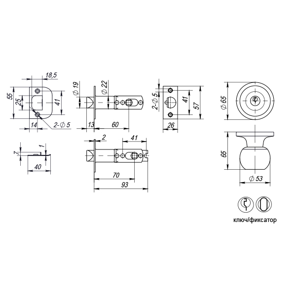 Ручка защелка 6072 BL-E (кл./фик.) черный