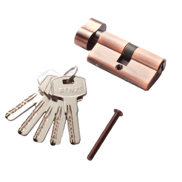 Цилиндр RENZ INCC 60-H AС 60 мм К-З, компьютерный ключ, медь античная