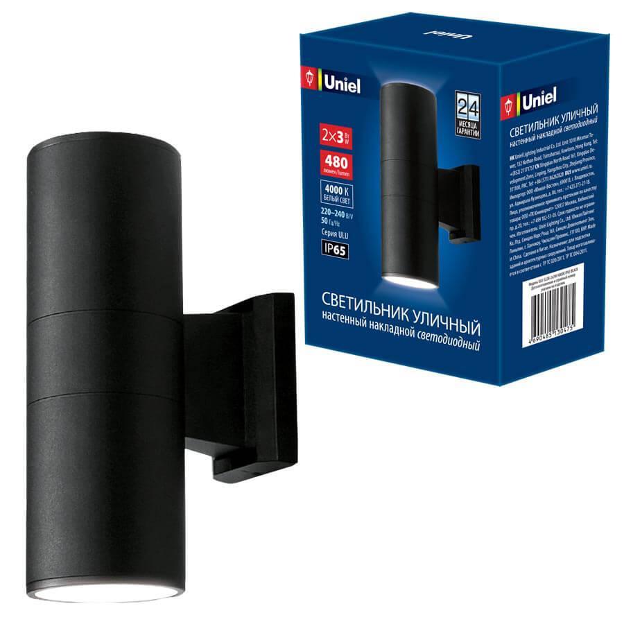 Уличный настенный светодиодный светильник Uniel ULU-S22B-2X3W/4000K IP65 Black UL-00006802