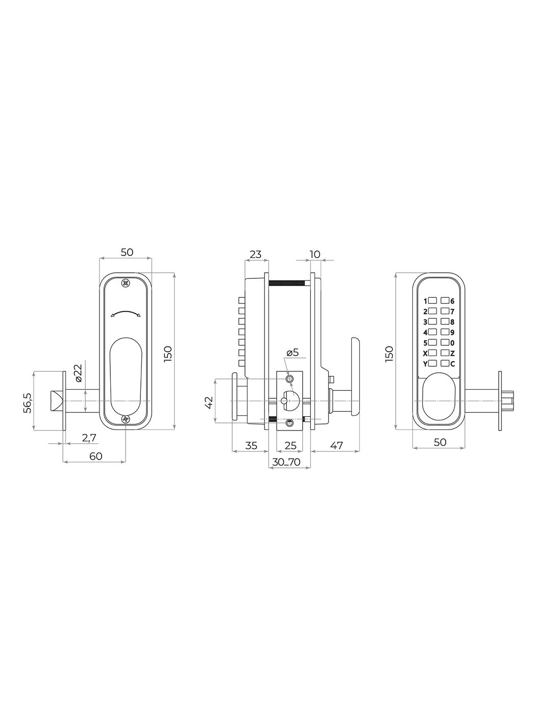 Накладной механический кодовый замок AJAX RIM-200 code предназначен для установки на внутренние двери, толщиной от 35 до 55 мм. Универсальный, применяется на двери правого или левого открывания.Автоматически блокируется при захлопывании двери. С внешней стороны замка RIM-200 code расположена кодовая панель, с внутренней - ручка на планке с фиксатором. Фиксатор позволит удержать механизм замка в открытом положении.Замок перекодируемый. Материал изготовления корпуса - ZAMAK, механизма и ригеля - сталь. Цвет: матовый никель. Упаковка: коробка. Комплектация: корпус и накладка замка, резиновые уплотнители, защелка, отвтная планка, карточка с кодовой комбинацией, набор крепежа, набор для смены комбинации секретности.Характеристики