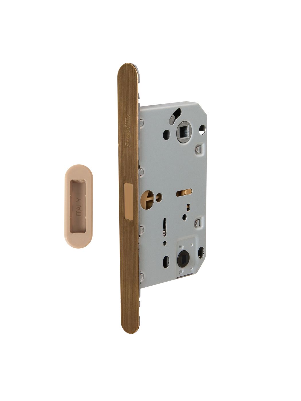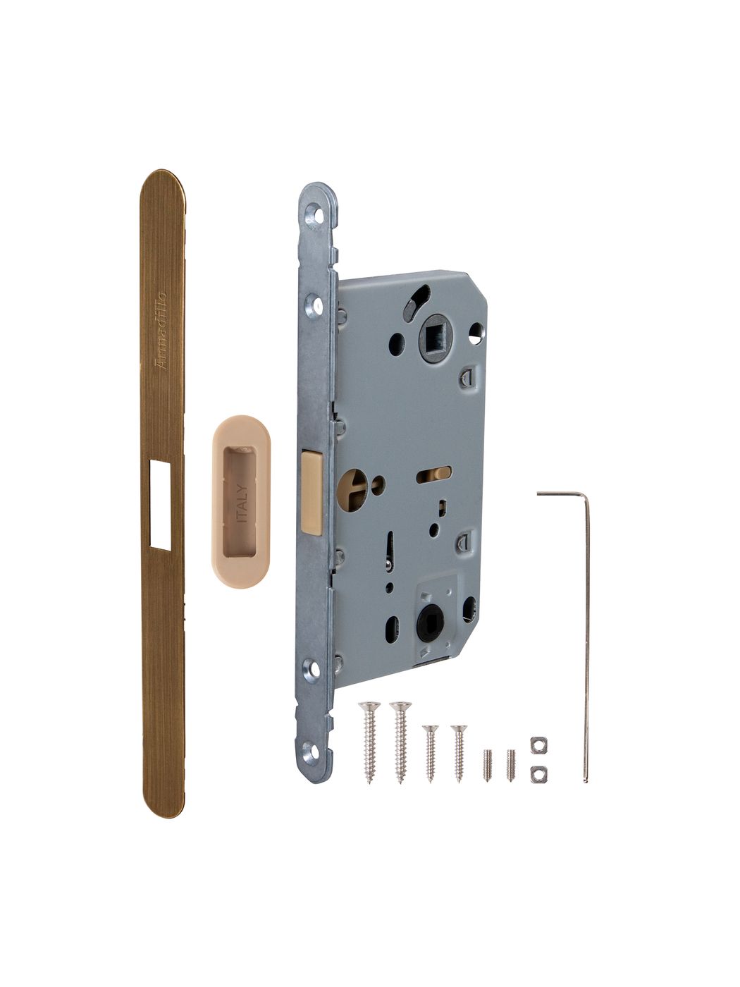Замок дверной магнитный Armadillo (Армадилло) WC с ответной планкой GRAVITY.PRO G01.196.50.96 AB бронза