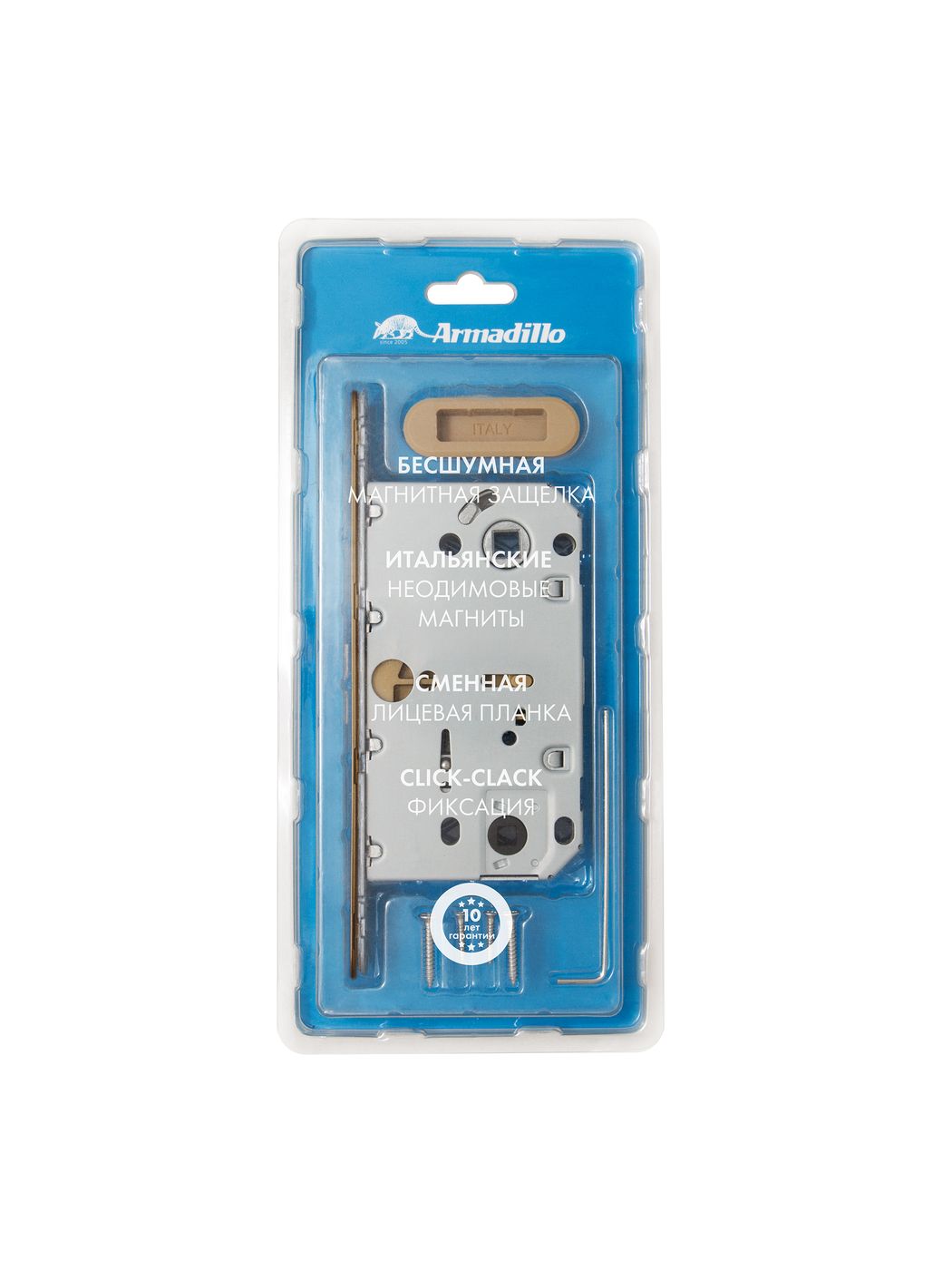 Магнитные защёлки Armadillo GRAVITY-PRO- это инновационная версия уже популярного механизма, представляющая собой модное дизайнерское направление. Предназначены для установки в деревянные, межкомнатные и сантехнические двери левого и правого открывания с толщиной полотна от 35 мм.Бесшумность работы достигается за счёт магнитного механизма, срабатывающего только при закрывании.Оригинальные итальянские неодимовые магниты препятствуют преждевременному размагничиванию.Форма ответной планки со скошенными краями обеспечивает отличное сцепление и плавное закрывание.Сменная лицевая планка скрывает установочные винты, придавая более эстетичный вид.Ответная планка имеет возможность фиксации «Click-Clack» без использования дополнительного крепления.Характеристики
