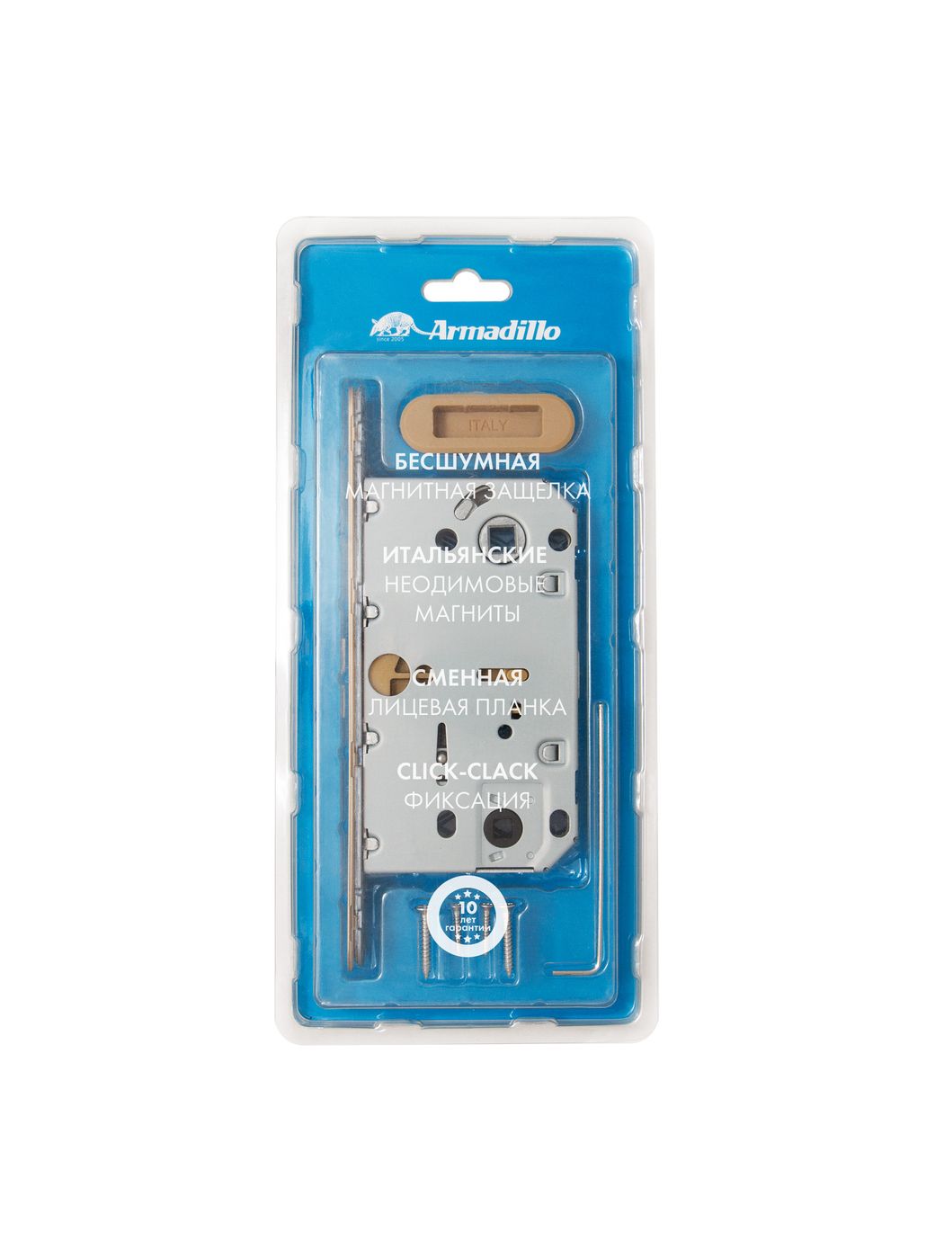 Магнитные защёлки Armadillo GRAVITY-PRO- это инновационная версия уже популярного механизма, представляющая собой модное дизайнерское направление. Предназначены для установки в деревянные, межкомнатные и сантехнические двери левого и правого открывания с толщиной полотна от 35 мм.Бесшумность работы достигается за счёт магнитного механизма, срабатывающего только при закрывании.Оригинальные итальянские неодимовые магниты препятствуют преждевременному размагничиванию.Форма ответной планки со скошенными краями обеспечивает отличное сцепление и плавное закрывание.Сменная лицевая планка скрывает установочные винты, придавая более эстетичный вид.Ответная планка имеет возможность фиксации «Click-Clack» без использования дополнительного крепления.Характеристики