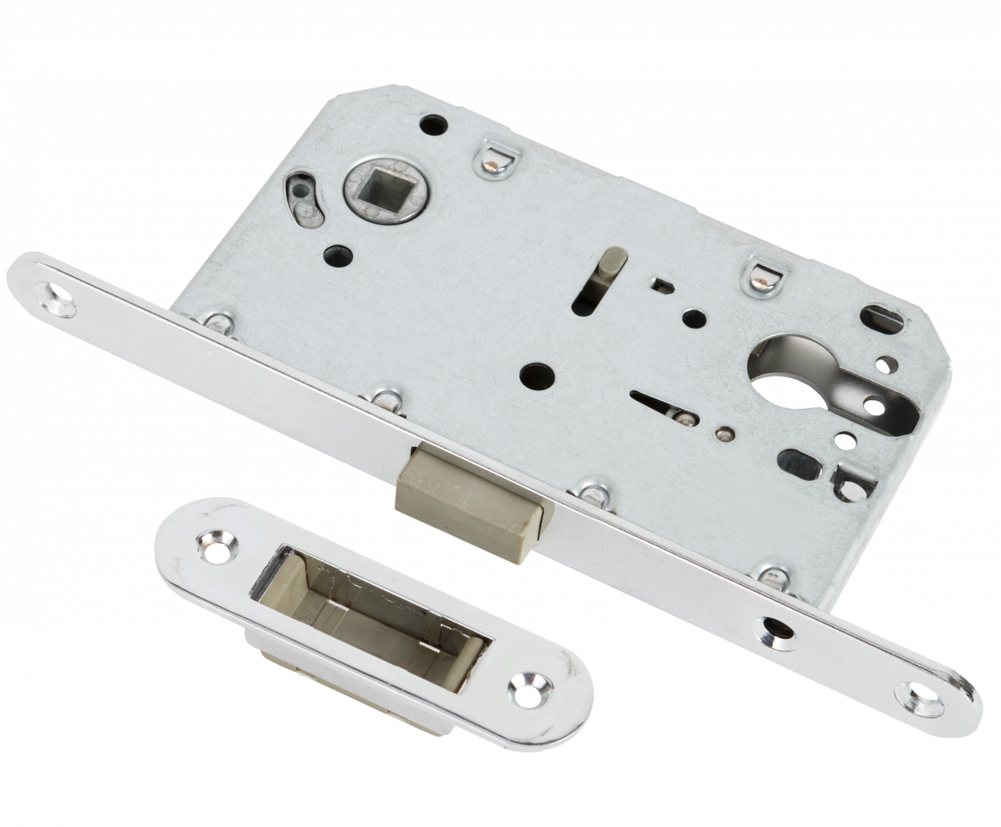 Замок магнитный под цилиндр RENZ INLBM 5085 PL C с пластиковой ответной планкой, хром блестящий