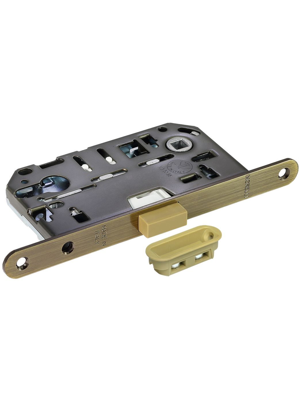 Итальянская защелка магнитная под цилиндр используется для запирания межкомнатных дверей ключом с использованием магнитного механизма. Ответная планка приобретается отдельно.">Характеристики