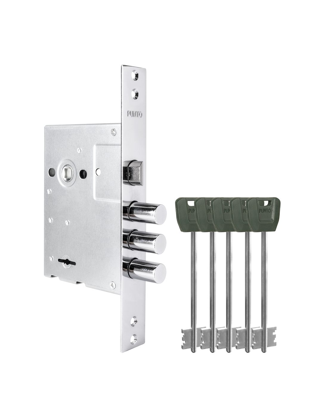 Замок Punto (Пунто) врезной сувальдный MDV30/S-65.77 CP хром (длинный ключ) тех.уп.