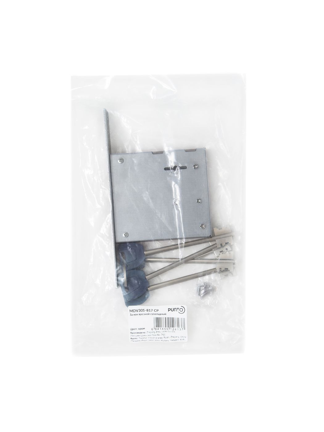Замок Punto (Пунто) врезной сувальдный MDV30S-817 CP (V30/S) CP хром длиный ключ