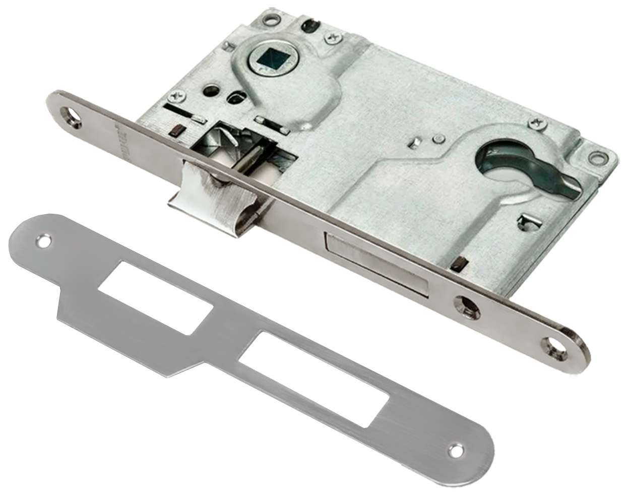 Замок RENZ INLBB 8550-2/1 SN 1 ригель и защелка, с подшипниками, никель матовый