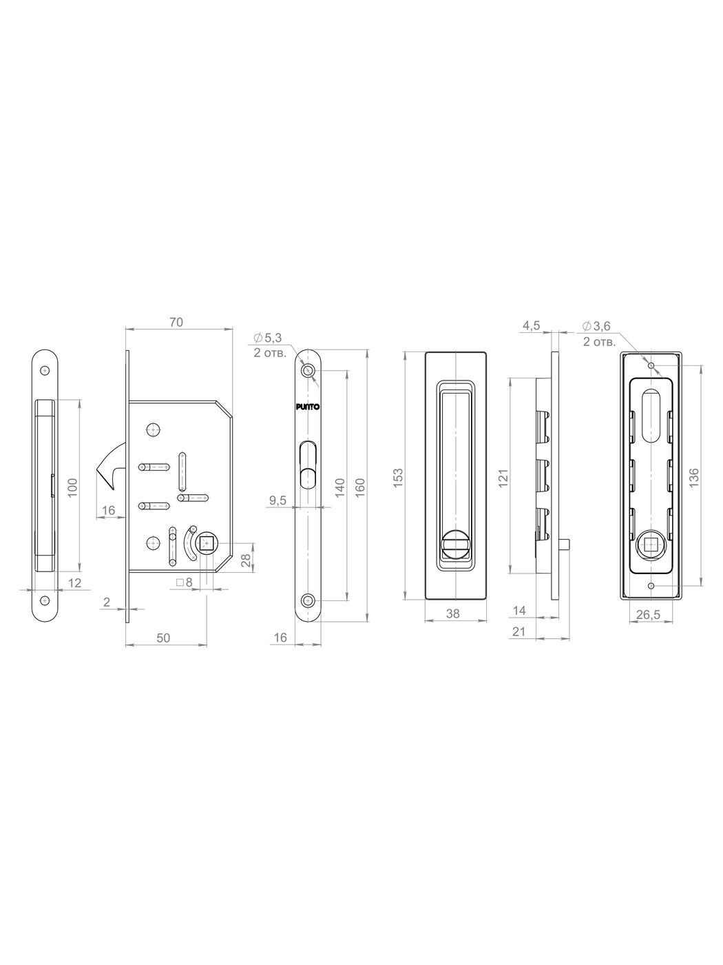 Защелка Punto (Пунто) с ручками для раздвижных дверей SH.SLQ152.011 (Soft LINE SLQ-011) SN мат.никель