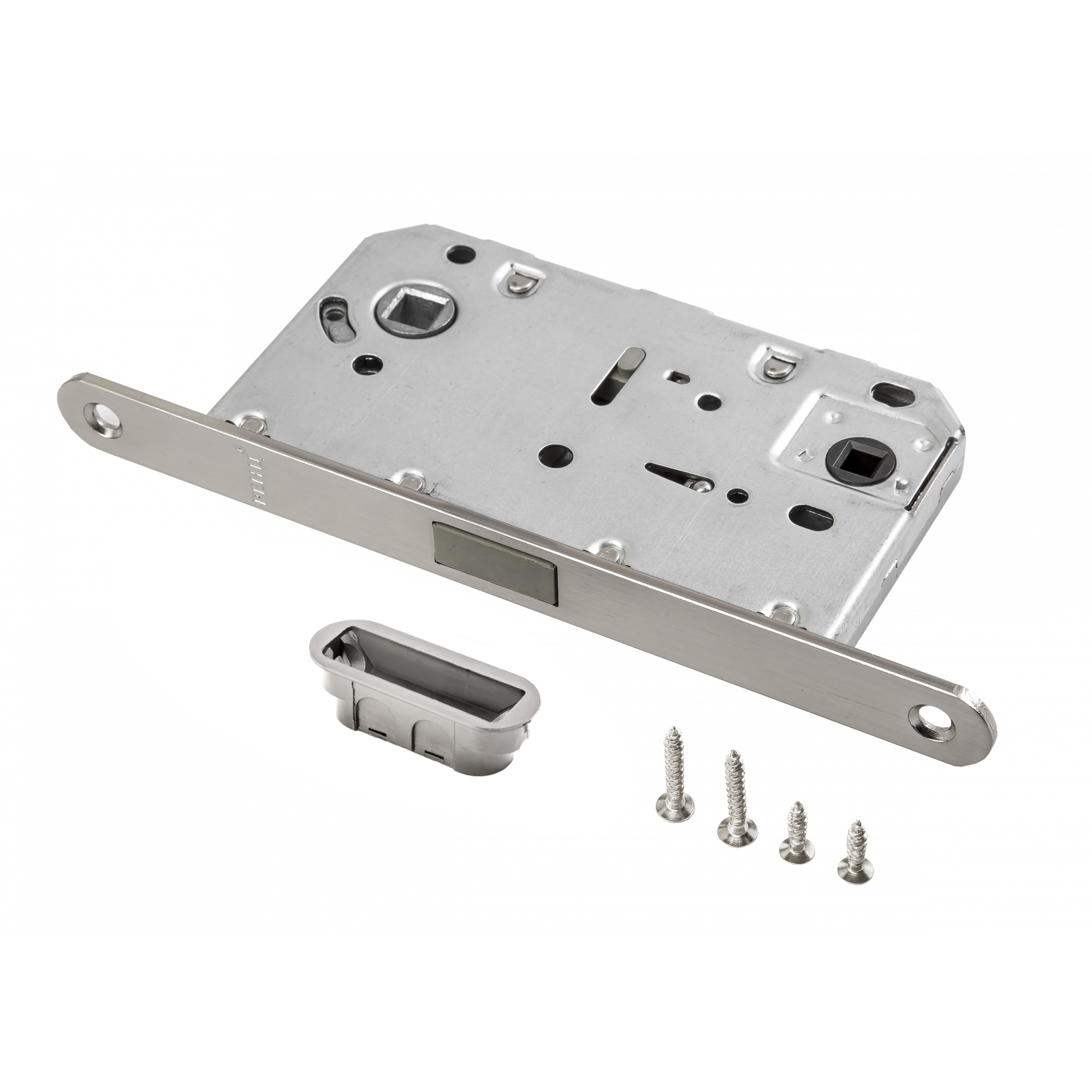 Защелка сантехническая магнитная RENZ INLBM 5096 pl SN с пластиковой ответной планкой, никель матовый